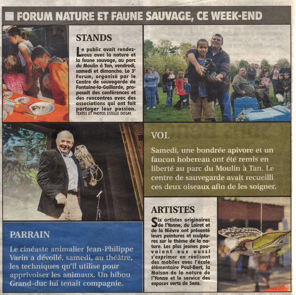 Village nature : Union Française des Centres de Sauvegarde de la faune sauvage "UFCS" Centre de Sauvegarde pour Oiseaux Sauvages et petits mammifères "CSOS" La préservation du Balbuzard pêcheur Ville de Sens "animation nature" le loup, cet animal méconnu "exposition consacré au loup" Maison de la Nature et de l’Environnement de l’Yonne Association mycologique véronaise Agence de l’eau Seine Normandie Conservatoire des sites naturels bourguignons Association Pie Verte Bio De l'Oeuf au poussin "Ecole Paul Bert" Groupe Ornithologique Nord Alsace "exposition sur le GORNA" L’Abeille de Papineau (apiculteur) Office National de la Chasse et de la Faune Sauvage "ONCFS" Fédération Départementale des Chasseurs de l’Yonne "FDCY" Entende des pêcheurs du sénonais Muséum d’Histoire Naturelle d’Auxerre Les animaux de nos jardins "Ecole de Rosoy"
