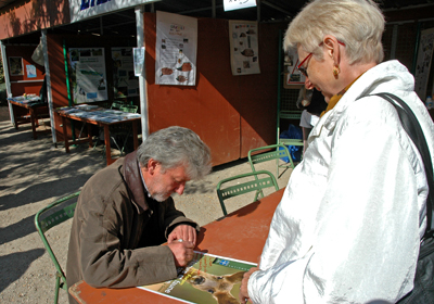 Notre parrain : Laurent Charbonnier cinéaste animalier, a obtenu de nombreux prix dans différents festivals nationaux et internationaux. Il nous a fait l'honneur de dédicacer l'affiche du forum dans le stand de l'UFCS |