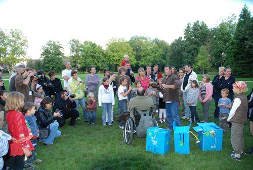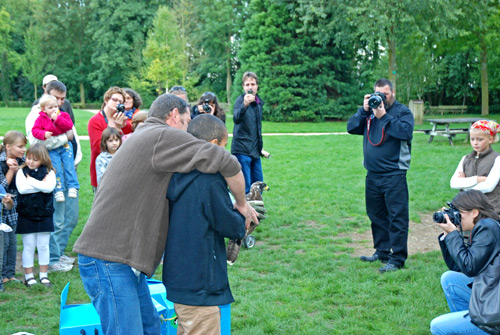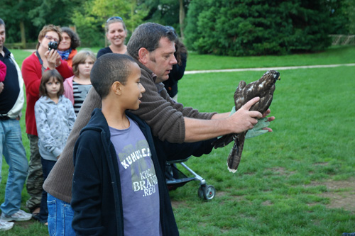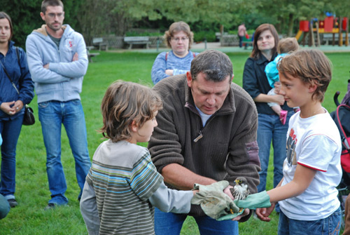 Samedi en fin d'aprés midi, deux conférences ont été proposé au grand public : la vie du Faucon crécerelle présenté par Laurent Larzillière et la vie de la Buse variable présenté par Dominique Crickbbom. A l'issu de ces conférences, Laurent et Dominique ont rendu la liberté à deux oiseaux. Une Bondrée apivore et un Faucon hoberau ont été remis dans leur milieu naturel sous les yeux émerveillés des enfants. |