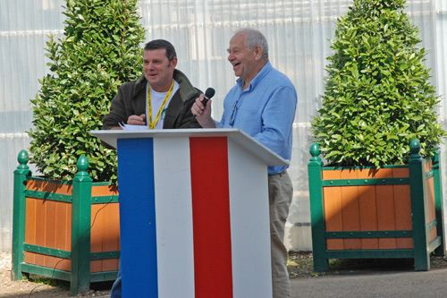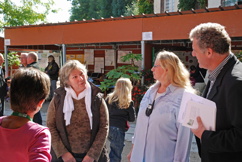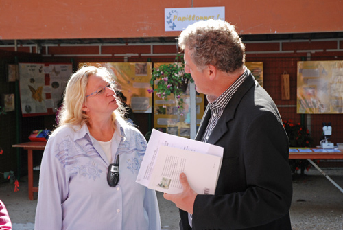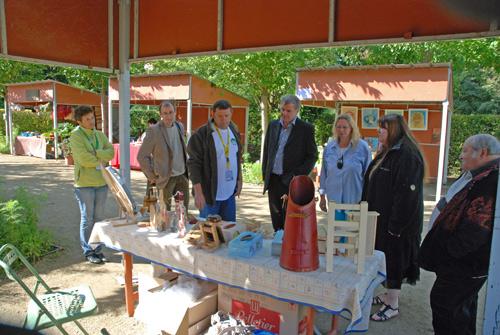 | Christiane Crickboom, Présidente du C.S.O.S. présente les stands à Mr le maire de Sens Daniel Paris |
